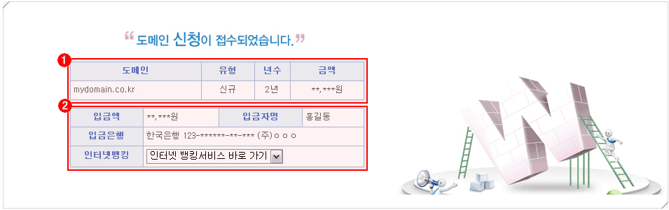 (2) 은행입금정보 : 도메인 신청에 대한 입금정보가 확인이 가능합니다.