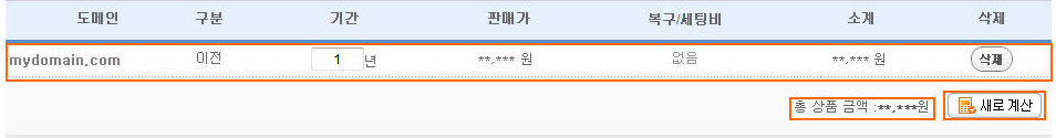- 새로계산 버튼을 클릭해 변경된 서비스 내역에 대한 총 상품 금액을 확인하실 수 있습니다.